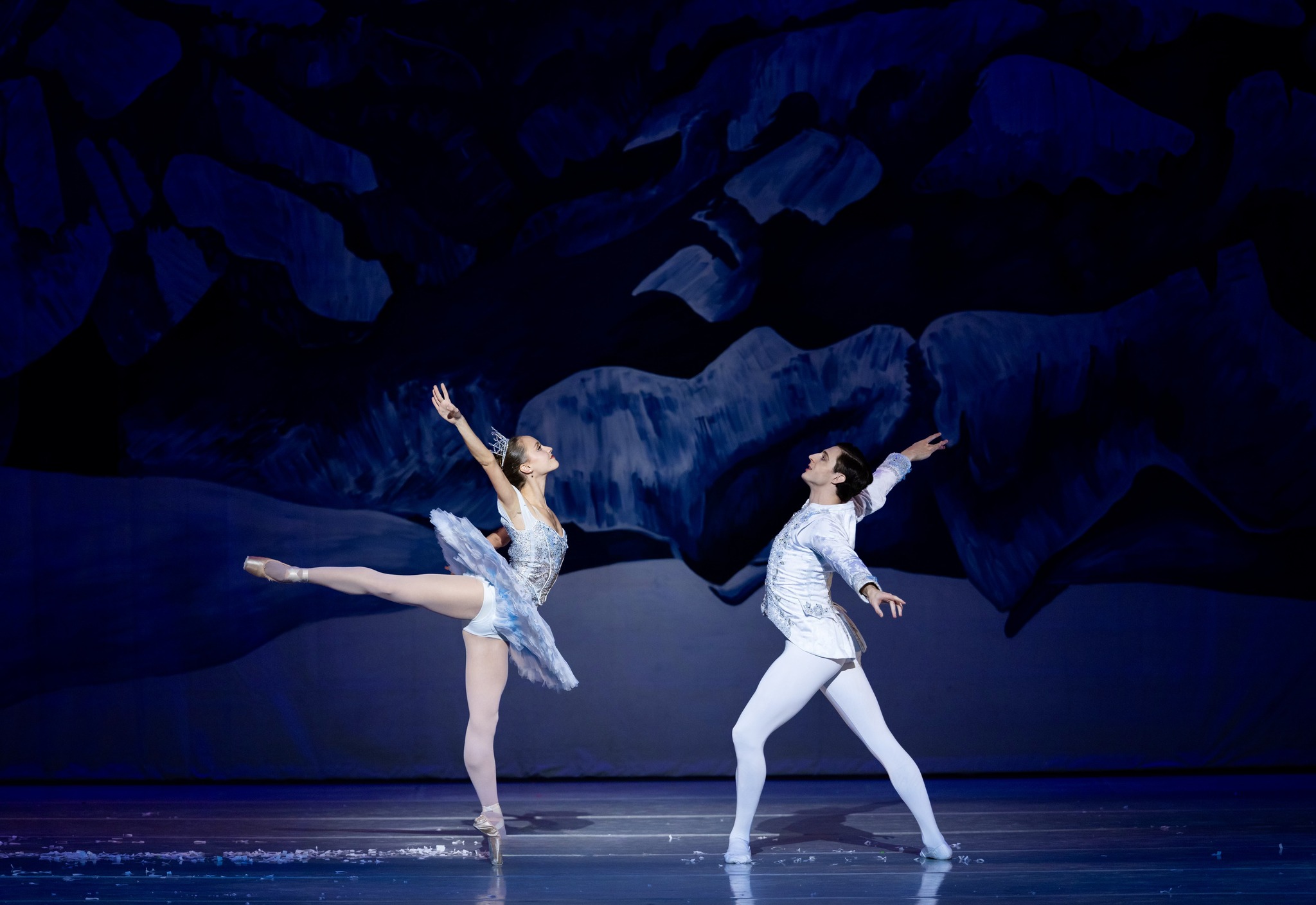 In the second act, Clara and the Nutcracker—now revealed as a handsome prince—journey to the Land of Sweets, a dazzling realm presided over by the radiant Sugar Plum Fairy. Here, the ballet shines as a showcase of international dances, each performed in tribute to Clara’s bravery: the Spanish Chocolate, Arabian Coffee, Chinese Tea, Russian Candy Cane, and the elegant Waltz of the Flowers. These divertissements not only display a wide range of choreography styles—from the precise footwork of classical ballet to the spirited jumps of folk dance—but also allow the company’s dancers to demonstrate their technical prowess and dramatic artistry.