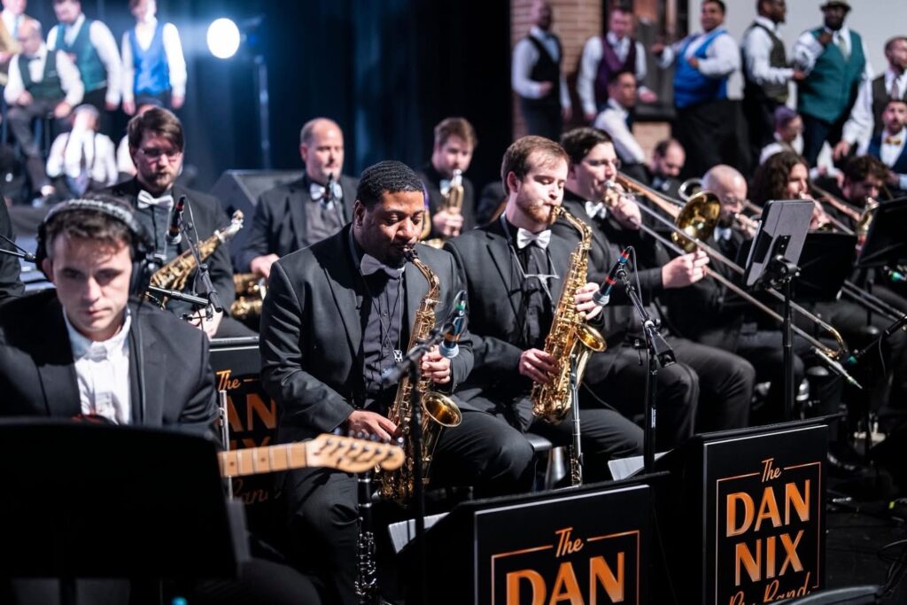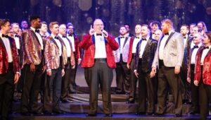 The Indianapolis Men’s Chorus, under the leadership of Artistic Director Greg Sanders, continues to demonstrate remarkable growth as a performing arts organization. This was particularly evident in its recent Sunday presentation of What Happens in Vegas at the Warren Arts Performing Arts Center. Making this particular concert distinctive was the participation of Dan Nix and his 17-piece Big Band, which performed alongside 96 singers in IMC’s most ambitious presentation yet. The two groups together produced a spectacular, all-enveloping wall of sound, making the event fully immersive.